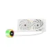 The 1STPLAYER CC 240 ARGB Liquid CPU Cooler White delivers excellent cooling performance and stunning ARGB lighting. This 240mm CPU cooler comes with a pure copper endothermic block that transfers heat from the CPU to the liquid efficiently. The 1STPLAYER Liquid CPU Cooler also has a high-density sigmoidal pin radiator that dissipates heat through the air. Their high-performance silicone grease reduces thermal resistance and improves heat conduction. The 1STPLAYER CC 240mm CPU Cooler White operates at 2000±10% RPM bearing water pump and has a lifespan of 40,000 hours. The pump head is equipped with a CPU core temperature display that shows the real-time temperature. The 1STPLAYER CC 240 ARGB Liquid CPU Cooler White also has a Jaeger FDB silent fan with a low noise level and high airflow. The fan and the pump head support 5v RGB sync with the motherboard (ARGB) and display various colors and effects that match the motherboard's lighting. The 1STPLAYER CC 240 ARGB Liquid CPU Cooler White has a vacuum-plated top cover that protects the pump head and adds a sleek and elegant look. It also has a thick finned cooling row that enhances cooling performance and durability. The 1STPLAYER 240mm CPU cooler has a multi-mode lighting control cable to switch between different lighting modes and colors with a simple button press.