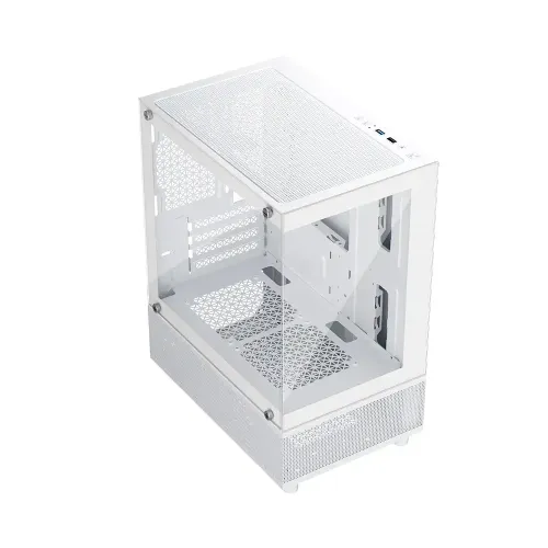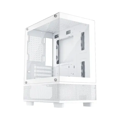 The 1STPLAYER Mi2-A White M-ATX Mid Tower Gaming Casing is built of SPCC material and has a structural thickness of 0.5mm, ensuring stability and durability. In addition to providing durability and protection, its tempered glass front and left side panels let you see all of your rig's components clearly. The Mi2-A White offers a broad range of motherboard compatibility by supporting both M-ATX and ITX form factors. The drive bays contain one 3.5" HDD and one 2.5" SSD, which offers sufficient storage space without the need for a 5.25" CD-ROM drive. A CPU with a maximum height of 165mm and a VGA with a maximum length of 310mm are supported by the 1STPLAYER Mi2-A White Mid Tower Casing, allowing for a wide range of component sizes. The I/O panel of the 1STPLAYER Mi2-A White M-ATX Mid Tower Gaming Casing provides easy access to essential connectivity features, including one USB 3.0 port, one USB 2.0 port, and support for HD audio. The enclosure's seven PCI card slots offer a multitude of expansion choices. Cooling is efficiently controlled with support for up to two 12-cm fans at the top, one 12-cm fan at the rear, and two 12-cm fans at the bottom, ensuring optimal airflow to keep your system cool. Additionally, the 1STPLAYER Mi2-A White Gaming Casing supports a 24cm liquid cooling radiator at the top, with a maximum RAM height of 40mm, providing advanced cooling alternatives for more demanding rigs. The power supply, which is conveniently located at the bottom, enhances cable management and the system's overall appearance.