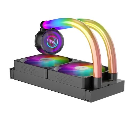 The 1STPLAYER MT240 INFINITE SPACE ARGB Liquid CPU Cooler is a high-performance 1STPLAYER CPU Cooler that offers great cooling efficiency, bold aesthetics, and dependable durability for gaming and professional configurations. This 1STPLAYER Liquid Cooler offers a modern touch to any build with lit tubes and an infinite mirror effect on the cooler head, all while perfectly synchronizing with ARGB lighting for a visually stunning experience. This 1STPLAYER 240 mm Cooler's s high-density fin radiator guarantees efficient heat dissipation, making it excellent for high-performance CPUs and overclocking circumstances. The copper endothermic cold plate maximizes thermal conductivity, efficiently absorbing heat to keep temperatures steady even under heavy loads. This 1STPLAYER 240mm CPU Cooler has broad compatibility and supports numerous CPU sockets, including Intel LGA 1851, 1700, 1200, 2066, 115x, 2011, 1366, 775, and AMD AM5, AM4, AM3, AM2, FM2, FM1, ensuring versatility across different processor generations. The radiator is 277×120×27mm and has 390mm tubes for optimal heat dissipation in a compact and efficient design. The pump operates at 2500 RPM, producing little noise at ≤30 dB (A), ensuring powerful yet silent cooling performance. The two 120mm fans create 82.61 CFM airflow, keeping temperatures steady while operating quietly at ≤30 dB (A). This 1STPLAYER Cooler is designed for durability and dependability, with accurate leak-proof technology that ensures continuous cooling performance over lengthy periods of time. Whether for gaming, content creation, or professional workloads, The 1STPLAYER MT240 INFINITE SPACE ARGB Liquid CPU Cooler provides a powerful cooling solution, breathtaking aesthetics, and ultra-quiet operation, making it an ideal choice for customers wishing to improve their system's cooling performance while also adding a fashionable touch to their PC builds.