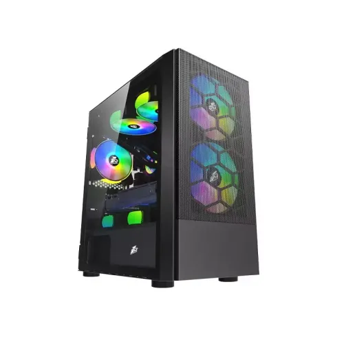 The 1STPLAYER X4-M mATX Gaming Casing Black is a sleek, high-performance chassis designed for gamers and PC enthusiasts seeking style, functionality, and thermal efficiency in a compact form. Compatible with Micro-ATX and Mini-ITX motherboards, this 1STPLAYER X4-M case offers robust support for powerful builds, featuring four expansion slots for advanced graphics cards and add-on components. Its tempered glass side panel provides a clear view of internal hardware and RGB lighting, while the metal mesh front panel ensures superior airflow and cooling performance. The top I/O panel includes USB 3.0, dual USB 2.0 ports, and HD Audio, delivering fast connectivity and immersive sound. With support for 240mm liquid cooling systems, the X4-M maintains optimal temperatures during intense gaming sessions. Storage flexibility is unmatched, offering five drive bays—including multiple 3.5" HDD and 2.5" SSD options—to accommodate games, media, and applications with ease. Finished in matte black, this 1STPLAYER X4-M casing combines minimalist aesthetics with gamer-grade features, making it an ideal choice for building a compact yet powerful gaming rig.