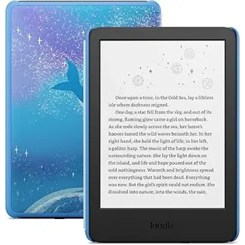 The Amazon Kindle Kids 16GB Tablet is a thoughtfully designed e-reader made to spark a love for reading in children. It comes with a 6-inch high-resolution glare-free display that mimics the feel of real paper, even under direct sunlight. This means kids can read comfortably both indoors and outdoors without eye strain. The adjustable front light ensures a perfect reading environment, whether it’s day or night. With a slim and lightweight build, it’s easy for children to carry, hold, and use on the go. Equipped with 16GB internal storage, the Amazon Kindle Kids Edition 11th Gen 6" Tab PC can store hundreds of eBooks, from picture books and chapter books to educational content. Every purchase includes one year of Amazon Kids+, offering unlimited access to thousands of kid-friendly books curated for ages 7 and up. This subscription includes popular titles from trusted brands like Disney, Marvel, and National Geographic, along with educational books that promote learning through fun . Unlike regular tablets, the Amazon Kindle Kids has zero distractions — no games, no ads, no videos. It’s fully dedicated to reading, helping children focus better, and building consistent reading habits. The Parent Dashboard makes it easy for guardians to monitor activity, set reading goals, adjust age filters, and track progress. Built-in tools like Vocabulary Builder, Word Wise, and achievement badges further motivate kids to expand their vocabulary and comprehension skills.Battery performance is another major advantage. With up to 4 weeks of battery life on a single charge, kids can enjoy uninterrupted reading during trips, school breaks, or bedtime. The Kindle Kids also comes with a durable, colorful, kid-friendly cover that protects the device from accidental drops and scratches. Whether you're raising a curious reader, preparing your child for school, or simply looking for a screen-safe digital alternative to video games, the Amazon Kindle Kids 16GB E-Book Reader is a perfect fit.