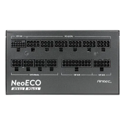 The Antec NE1300G M 1300W ATX 3.1 is a premium-grade, high-performance PSU engineered to deliver superior efficiency, stability, and reliability for gaming PCs and professional workstations. This Antec NE1300G M 1300W Power Supply supports the latest ATX 3.1 and PCIe 5.1 standards, ensuring full compatibility with next-generation GPUs and high-end hardware, including a dedicated 16(12+4) pin PCIe 5.0 12VHPWR connector for powerful graphics cards. With an impressive 1300W total output and 80 Plus Gold certification, the Antec NE1300G M 1300W ATX 3.1 Power Supply delivers up to 90% power efficiency, reducing heat and energy consumption while maintaining consistent performance. Equipped with high-quality Japanese capacitors and a 120mm FDB silent fan, it ensures long-term stability and whisper-quiet cooling during intense workloads. The full modular cable design allows for easier cable management, better airflow, and a cleaner build layout. To protect your components, this Antec NE1300G M 1300W ATX 3.1 PSU features comprehensive protection systems, including OCP, OVP, UVP, SCP, OPP, OTP, SIP, and NLO, ensuring total safety from power irregularities. With a wide input voltage range of 100V–240V, a power good signal of 100–150ms, and support for multiple international safety certifications like CE, FCC, BIS, and UKCA, this power supply guarantees reliable performance worldwide. Offering extensive connectivity with dual 8(4+4) pin CPU, four 8(6+2) pin PCIe, twelve SATA, and four Molex connectors, the Antec NE1300G M 1300W ATX 3.1 Power Supply is the perfect choice for enthusiasts and professionals seeking a powerful, efficient, and future-ready PSU solution.