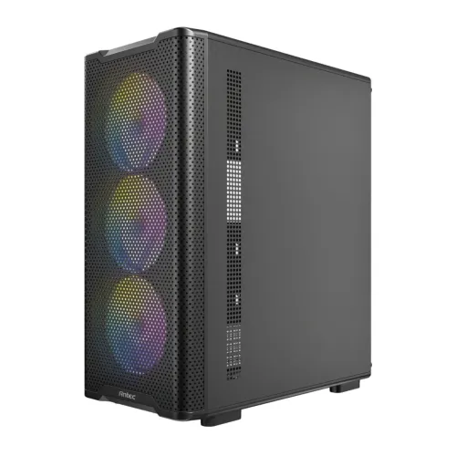 The Antec VX310 ARGB Mid Tower ATX Gaming Casing is engineered to meet the demands of modern gamers and PC enthusiasts. Designed with broad motherboard support, it easily fits ATX, Micro-ATX, and ITX motherboards, allowing flexibility whether you're building a compact rig or a full-sized gaming powerhouse. Its robust steel and plastic frame ensures durability and longevity, while the elegant tempered glass side panel offers a premium look that lets you showcase your internal hardware and vibrant ARGB lighting effects.This mid tower case provides enough internal space for top-tier hardware. It supports graphics cards up to 320mm in length, perfect for most high-end GPUs on the market, and CPU coolers up to 165mm in height, enabling efficient heat dissipation for better system stability. The case also accommodates power supplies up to 160mm with HDD installed or up to 325mm without HDD, giving you options for various PSU sizes and cable management preferences.Cooling is a major focus of the Antec VX310. It comes with 3 x 120mm ARGB fans pre-installed at the front and 1 x 120mm ARGB fan at the rear, providing optimal airflow to keep your components cool under load. The ARGB fans are customizable through the dedicated LED control button on the front panel, so you can personalize your lighting to match your gaming setup. The case supports extra fans on the top panel — either 2 x 140mm or 2 x 120mm — and 2 x 120mm on the power supply shroud, giving you flexibility to further enhance cooling performance.The front I/O panel is thoughtfully designed with practical features such as 1 USB 3.0 port, 2 USB 2.0 ports, microphone and headphone audio jacks, a reset button, and LED control button for quick access to essential functions. This setup ensures seamless connectivity without needing to reach behind the PC.Storage options include 3.5-inch drive bays for traditional hard drives, combined with support for SSDs (2.5-inch), so you can easily configure a hybrid storage solution for speed and capacity. The tempered glass side panel not only looks great but is easy to remove for upgrades and maintenance.Despite its sturdy build, the Antec VX310 is easy to handle during installation or transport. The overall design emphasizes a clean, modern aesthetic with a balance of functionality and style, making it a perfect choice for gaming setups, streaming rigs, or powerful workstations.The Antec VX310 ARGB Mid Tower Gaming Case assures users of quality and support. Whether you’re a first-time builder or upgrading your rig, this case delivers exceptional value with excellent airflow, attractive ARGB lighting, flexible hardware support, and practical design features — all in a durable and visually striking package.