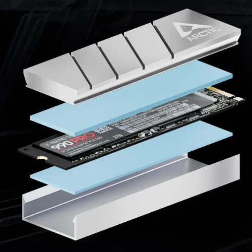The Arctic M2 Pro M.2 2280 SSD Cooler in Silver is a stable and efficient cooling solution that maintains good storage performance. Starting with the Arctic M2 Pro M.2 2280 SSD Cooler Silver, the solid aluminum construction provides outstanding heat dissipation, reducing thermal throttling even during hard workloads or gaming sessions. The Arctic M2 Pro SSD Cooler Silver includes TP-3 thermal pads in two sizes: 70 x 20 mm in 1.5 mm and 1 mm thickness, ensuring optimal heat conductivity for both single-sided and double-sided SSDs. Customers may be convinced that the Arctic SSD Cooler functions reliably in real-world conditions, providing for stable read and write performance over long periods of time, according to measurements taken at a PC case's air temperature of 25°C. The Arctic M2 Pro M.2 2280 SSD Cooler is particularly notable for its PS5 compatibility, making it an excellent choice for console players wishing to maintain smooth gaming performance while also protecting their M.2 storage from heat buildup. Its straightforward installation technique allows users of all skill levels to install it with ease, and the aluminum body provides long-term durability and protection. Whether increasing PC configurations or upgrading storage cooling for the PlayStation 5, the Arctic M2 Pro SSD Cooler Silver provides consistent performance backed by intelligent engineering.
