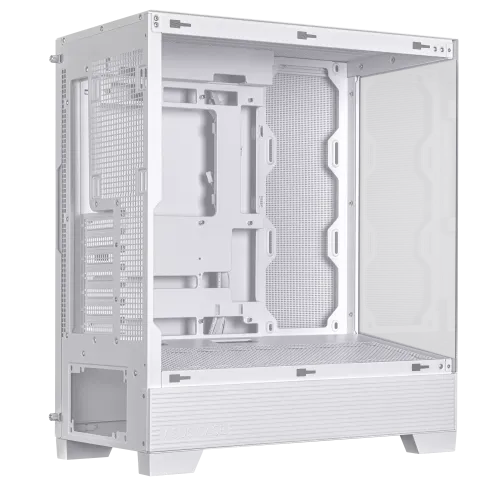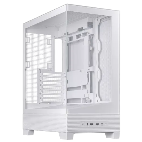 The ASUS A31 ATX Mid-Tower Gaming Case in White blends functionality, design, and compatibility. High-performance configurations can be enabled by neat cable management and extensive hardware support. It is designed as a mid-tower case and supports ATX, Micro-ATX, and Mini-ITX motherboards, as well as complete compatibility with BTF motherboards with hidden connectors. The ASUS A31 White Gaming Casing's design promotes a clutter-free build environment, with up to 34 mm of dedicated cable management space. It includes two 2.5"/3.5" combo drive bays and seven expansion slots, allowing for a wide range of hardware configurations. The front I/O panel is modern and user-friendly, featuring one headphone/microphone jack, two USB 3.2 Gen1 connections, and a USB 3.2 Gen 2x2 Type-C port for quick communication. The ASUS A31 Gaming Casing White is intended to provide optimal cooling by accommodating top-mounted radiators up to 360mm and rear-mounted radiators up to 120mm. It can accommodate up to three 120mm or two 140mm fans on top and one 120mm or 140mm fan in the back. The ASUS A31 White ATX Mid-Tower Gaming Casing supports CPU air coolers up to 165mm tall, graphics cards up to 380mm long, and power supplies up to 200mm long. The ASUS A31 ATX Mid-Tower Gaming Casing White also features tempered glass panels on the front and left sides, giving you a clear view of your components and lighting, resulting in a panoramic look. Its 8° slanted base improves both airflow and thermal performance while also adding aesthetic appeal by allowing for a wider viewing angle.