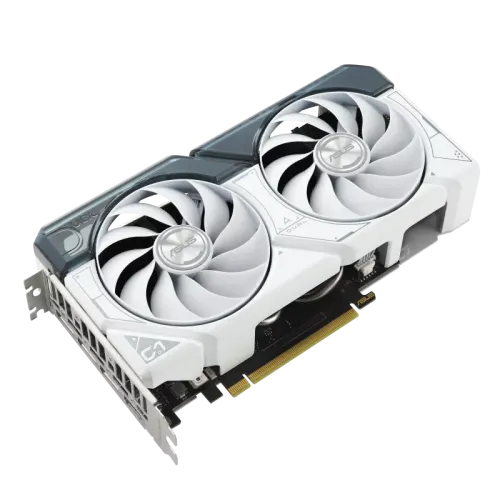 The ASUS Dual GeForce RTX 4060 White OC Edition 8GB GDDR6 graphics card features 246 AI TOPS, NVIDIA's ultra-efficient Ada Lovelace architecture, and complete ray tracing capabilities. Designed for high-performance gaming and video creation, it has 4th generation Tensor Cores that provide up to four times the performance with DLSS 3 compared to brute-force rendering, as well as 3rd generation RT Cores that double ray tracing performance. The ASUS Dual GeForce RTX 4060 White OC graphics card has an overclocked speed of 2535 MHz in OC mode and 2505 MHz in default mode, ensuring consistent performance across demanding workloads. The ASUS Dual GeForce RTX 4060 White OC Edition 8GB GDDR6 graphics card has 3072 CUDA cores and an 8GB GDDR6 memory configuration that runs at 17 Gbps. It features a 128-bit memory interface to efficiently perform high-resolution gaming and rendering duties. It has a maximum digital resolution of 7680 x 4320 and can drive up to four monitors using one native HDMI 2.1a port and three native DisplayPort 1.4a connections. It also supports HDCP 2.3 for secure multimedia streaming. The card uses the PCI Express 4.0 interface and supports OpenGL 4.6 to provide compatibility with contemporary programs. For cooling, the ASUS Dual GeForce RTX 4060 White OC Edition 8GB GDDR6 graphics card has an axial-tech fan design with a smaller hub to increase airflow across the cooling array. The 2.5-slot form size improves cooling performance while remaining compatible with smaller PC cases. The twin ball-bearing fans can last up to twice as long as standard sleeve-bearing fans, and 0dB technology provides quiet operation during light gaming sessions. A recommended 550W power source is required, with the card powered by a single 8-pin connector. This ASUS Dual GeForce RTX 4060 White OC Edition 8GB GDDR6 graphics card is ideal for gamers and creators seeking cutting-edge technology in a small and efficient package.