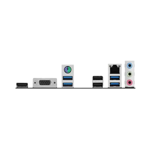 | Internal I/O Ports | Internal I/O Connectors Fan and Cooling-related 1 x 4-pin CPU Fan header 1 x 4-pin Chassis Fan header Power related 1 x 24-pin Main Power connector 1 x 8-pin +12V Power connector Storage related 1 x M.2 slot (Key M) 4 x SATA 6Gb/s ports USB 1 x USB 3.2 Gen 1 (5G) header supports 2 additional USB 3.2 Gen 1 ports 2 x USB 2.0 headers support 4 additional USB 2.0 ports Miscellaneous 2 x Addressable Gen 2 headers 1 x Aura RGB header 1 x Clear CMOS header 1 x COM Port header 1 x Front Panel Audio header (AAFP) 1 x S/PDIF Out header 1 x Speaker header 1 x 10-1 pin System Panel header Back Panel I/O Ports 4 x USB 3.2 Gen 1 (5G) ports (4 x Type-A) 2 x USB 2.0 ports (2 x Type-A) 1 x VGA port 1 x HDMI port 1 x Realtek 1Gb Ethernet port 3 x Audio jacks 1 x PS/2 Keyboard/Mouse combo port |