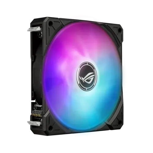 Strong and steady airflow is provided by the ROG RYUO IV MF-12C ARGB Fan, which further improves your system's cooling capacity. The installation process is streamlined by the daisy-chained, pre-installed ARGB fans. With just one wire, users can power the fan motor and ARGB lighting on the Asus ROG Ryuo IV SLC 360 ARGB CPU Cooler, making cable management easier. The gaming build is enhanced with style thanks to the ROG front and side ARGB lighting.