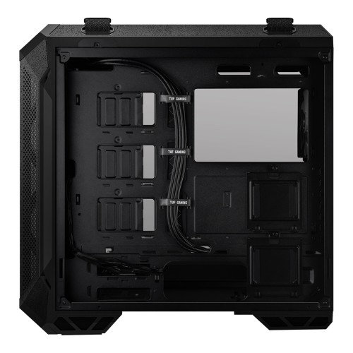 TUF Gaming GT501 is crafted from up to 1.5mm-thick galvanized steel for enhanced durability in understated industrial style, and has a special coating that resists scuffs and scratches. It's fitted with two ergonomic, woven-cotton handles, rigorously tested to support up to 30kg so it's both easy and safe to transport your completed build. With a full-height, smoked-glass side panel, TUF Gaming GT501 lets you show off your build from top to bottom so your components, customizations and Aura illuminations are all clearly visible. This panel is tempered for strength, and hinged at the bottom for opening ease. Fitted RGB-enabled fans enable to work with the Aura-supported motherboards. With exclusive ASUS Aura Sync lighting technology, TUF Gaming GT501 provides ambient lighting that can be synchronized with other Aura Sync-enabled components. TUF Gaming GT501's trio of 120mm Aura Sync RGB fans each contains 11 blades, and deliver high-static-pressure flow for targeted cooling. There's also a high-airflow 140mm PWM fan for wider heat removal. It's also easy to upgrade cooling when you need, with up to seven mounting points for the installation of additional fans. TUF Gaming GT501 makes PC DIY easier than ever. Integrated cable-management ensures neatness, while pre-installed physical supports for the motherboard eliminates additional costs and mean you're ready to build from the get-go. It all adds up to design with you in mind for an unrivalled PC-building experience. Removable dust filters effectively prevent airborne particulates from entering TUF Gaming GT501, keeping your system's internals looking as good as new for longer. The top and front filter are magnetic for a tight seal, and quick removal and cleaning, while the lower dust-trap is easily slid in and out to enable fast maintenance.