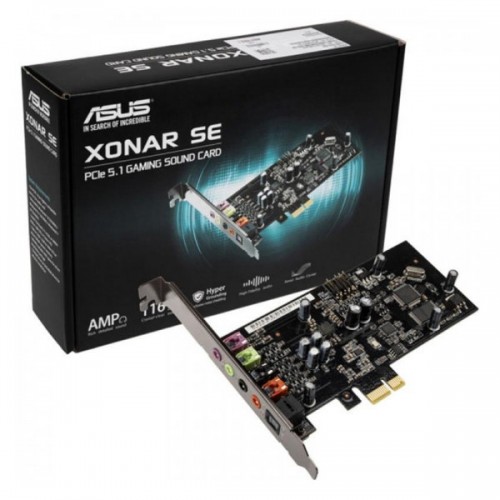 Xonar SE is a PCIe gaming sound card built with high-quality components to satisfy gamers who demand exceptional sound for the best gaming and multimedia experiences. Xonar SE delivers 5.1-channel, 192kHz/24-bit hi-res audio output with a high 116dB signal-to-noise ratio (SNR), and comes with a built-in 300ohm headphone amplifier that provides rich, detailed sound and defined bass. With up to 5.1-channel output and support for 192kHz/24-bit hi-res audio, Xonar SE lets you enjoy truly cinematic sound while gaming, watching movies and listening to music. Xonar SE delivers an exceptional audio signal with a 116dB signal-to-noise ratio (SNR) for 32-times greater clarity than average onboard audio chips. Since many gamers choose to play wearing headphones, Xonar SE features a high-quality, 300ohm headphone amplifier that delivers detailed, immersive sound with punchy, defined bass. Exclusive ASUS Hyper Grounding PCB fabrication ensures strong signal insulation to reduce distortion and interference, also known as component crosstalk. Xonar SE features the Xonar Audio Center software suite for full control over every aspect of sound, from equalization (EQ) to 5.1-speaker level-balancing, and provides a user-friendly experience via an inviting and intuitive interface. Xonar SE is fully compatible with Windows 10 and features Windows Hardware Quality Labs (WHQL) support, ensuring a great audio experience with minimal setup hassles. Xonar SE is only half the height of regular cards, so it comes with an interchangeable metal bracket to fit smaller cases.