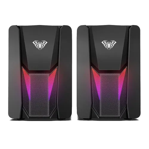 The AULA N-108 USB RGB Gaming Speaker is a compact and stylish audio device designed specifically for gamers. It features eye-catching atmosphere lighting that adds a vibrant and immersive visual element to your gaming setup. The small size of the speaker makes it ideal for those with limited desk space or for portable gaming setups. With independent volume adjustment, you have complete control over the audio output, allowing you to customize the sound to your preference. The speaker is equipped with a drive unit of 2 inches by 2 inches, delivering clear and powerful sound quality. Each speaker has a power output of 3W, providing a rich audio experience for your gaming sessions. The speaker comes with a convenient 1.2-meter cable that includes volume control, allowing you to easily adjust the sound without having to reach for your computer or gaming device. The plug-and-play feature ensures a hassle-free setup, requiring no additional drivers or software installation. The AULA N-108 USB RGB Gaming Speaker is a sleek and space-saving design. With dimensions of 67mm by 80mm by 98mm, it takes up minimal space on your desk while still delivering impressive sound performance. The lightweight construction further enhances its portability, making it easy to carry and set up wherever you go. The AULA N-108 USB RGB Gaming Speaker is universally compatible with various devices, including PCs, laptops, gaming consoles, and more. Whether you're a casual gamer or a hardcore enthusiast, this speaker is designed to enhance your gaming experience with its compact size, customizable lighting, and powerful sound output.