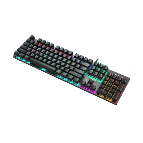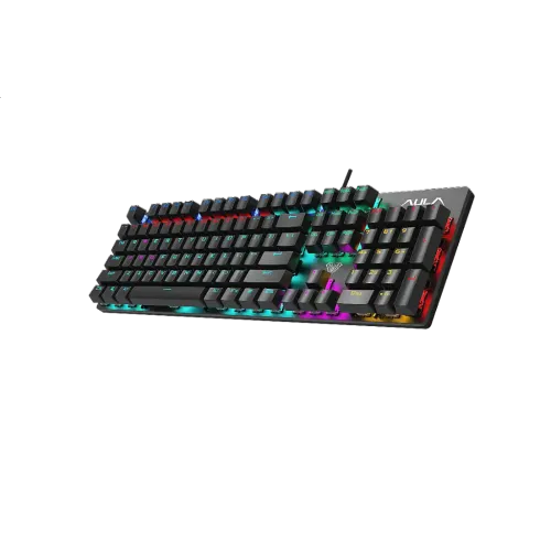 The AULA S2016 Wired Mechanical Gaming Keyboard is a stylish and durable keyboard designed for gaming enthusiasts. Its one-piece metal panel not only gives it a sleek appearance but also prevents rusting and scratches, ensuring long-lasting use. The keycaps are made using a two-color injection molding process, making them highly durable and resistant to fading. the keyboard offers a variety of multi-color options to suit individual preferences. With an ultra-thin design, this keyboard provides sensitive keystrokes, allowing for quick and precise input. The keys have a trigger stroke of 2.0mm, ensuring a responsive and comfortable typing experience. The keyboard utilizes mechanical blue axis switches, which offer excellent tactile feedback and a lifespan of up to 60 million keystrokes, guaranteeing durability even during intense gaming sessions. The AULA S2016 keyboard offers both 6-key and N-key mode options, allowing users to choose the mode that suits their needs. This feature ensures that online banking password entry remains unaffected, providing added security. The keyboard also includes a smart sleep mode, where the backlight function turns off when the host device enters sleep or standby mode. Upon resuming, the keyboard automatically restores the previous mode, saving energy and maintaining user preferences. With a keycap and gap backlighting, the keyboard provides uniform and customizable lighting options. Users can choose between single-color or mixed-light options to enhance the gaming experience. The keyboard also features a humanized design with additional shortcut function keys in combination with the Fn key, allowing for quick access to commonly used commands. All the keys on the keyboard are anti-ghosting, ensuring accurate input even in fast-paced gaming scenarios where multiple keys are pressed simultaneously. The keyboard's metal cover is anodized and frosted, providing a slim and durable appearance. The AULA S2016 Wired Mechanical Gaming Keyboard offers a stylish design, durable construction, sensitive keystrokes, and a range of customizable features. It is a reliable choice for gamers seeking a high-quality mechanical keyboard that combines functionality with aesthetic appeal.