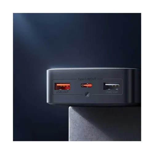 The compact power bank with 2 USB ports and a USB-C port will quickly charge the most demanding devices. High-speed USB QC3.0 and USB-C PD output with the built-in smart processor, ensures optimal charging speed to suit different devices.The Baseus Power Bank is compatible with all USB-powered devices, including Android or iOS smartphones and tablets. The power bank allows you to simultaneously charge the power bank and devices connected to it.