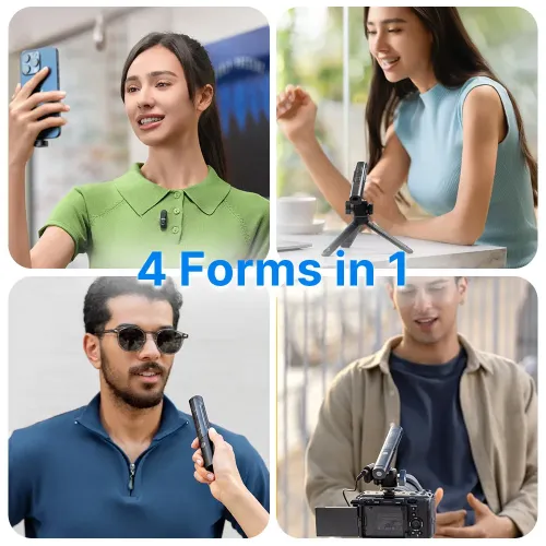 The BOYA Magic-03 Wireless Microphone is a versatile 4-in-1 audio solution designed for clip-on, handheld, desktop, and on-camera use, making it ideal for content creators, journalists, podcasters, and streamers. Weighing only 7 g and just 13 mm thin, the transmitter ensures a discreet and comfortable fit, while its built-in condenser mic captures pristine 48 kHz / 24-bit audio with a full 20 Hz – 20 kHz frequency response. Equipped with true AI noise cancellation offering up to -40 dB reduction, users can switch between strong and light noise suppression modes for crystal-clear recordings in any environment. The BOYA Magic-03 Wireless Microphone delivers an 80 dB signal-to-noise ratio, supports mono, stereo, and safety track output modes, and handles up to 115 dB SPL without distortion, thanks to its limiter and safety track features that prevent clipping. With 6 hours of battery life per mic and a total of 30 hours via the charging case, the BOYA Magic-03 is perfect for extended shooting or recording sessions. The transmitter’s 95 mAh lithium-ion battery charges fully in ≤2 hours, while the charging case’s 200 mAh capacity offers more than 1.5 cycles with a 2-hour charge time at 5V 2A. The lightweight receiver, at only 5 g, features playback without unplugging, gain control, and a replaceable magnetic adapter design supporting 3.5 mm TRS, USB-C, and optional Lightning connectivity. With compact dimensions (19.55 × 24 × 21 mm for the standard receiver and 42.2 × 30 × 19.4 mm for the 3.5 mm TRS receiver) and a 100 m transmission range, the BOYA Magic-03 Wireless Microphone ensures maximum portability and freedom of movement. Combining cutting-edge AI audio processing, long battery life, and multi-platform compatibility, the BOYA Magic-03 Wireless Microphone sets a new standard for professional yet user-friendly wireless audio recording.