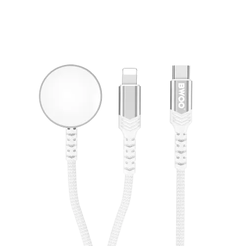 The BWOO BO-WL21 2 in 1 Magnetic Charger is a powerhouse of convenience, specifically engineered to streamline the charging experience for Apple users by combining an ultra-fast phone cable with a dedicated magnetic watch charger. This indispensable Adapter features universal compatibility with high-wattage power adapters, leading to a dual-output design that eliminates desktop clutter and traveling headaches. The BWOO BO-WL21 is built for speed, delivering a formidable 30W (Max) output through the Lightning connector, fully supporting the fast-charging capabilities of the latest iPhone models. Simultaneously, the magnetic charging puck provides a reliable 2.5W output for your Apple Watch (iWatch S1-S8), notably supporting the fast-charging function for Apple Watch Series 7 and 8. This ensures your phone and smartwatch can be powered up concurrently and efficiently from a single, neat cable. Engineered for longevity, the 1.2-meter-long cable utilizes a high-quality braided wire material, offering superior resistance to tangles, fraying, and daily wear and tear compared to standard TPE cables. The integrated magnetic alignment on the watch puck ensures an automatic, secure, and hassle-free connection every time. The charger integrates advanced safety features, including a smart chip that protects devices against common charging issues like overvoltage, overheating, and short circuits. The BWOO BO-WL21 is the definitive Charging Cable for a faster, safer, and more organized digital life.