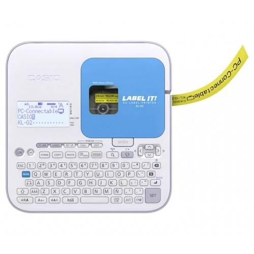 Casio KL-G2 Label Printer comes with Highly efficient input, printing, and tape cutting. This label printer is also featured with Printing speed of 20mm/sec, Auto cutter with half-cut function, Usable tape widths : 6mm to 24mm. It is PC-connectable via USB port. It increases work efficiency by reducing label production time. This Label printer is built-in auto cutter with half-cut function slits only the label for easy removal from the backing paper. This comes in handy when printing large numbers of labels or using the consecutive number printing function. It has the ability to print up to 8 lines means you can create labels with loads of information. The consecutive number printing function comes in handy when youre producing large numbers of labels. This new Casio Label Printer designed with QWERTY Keyboard layout, 128 x 64 dots with backlight LCD Display, 16 digits x 3 lines, 200 dpi/128 dots Printing resolution, 20 Printing speed (mm/sec.), 16 Maximum printing height (mm), 8 Maximum printing lines, Fonts Sans-serif, Fonts Sans-serif rounded, Fonts Roman, Normal/ Bold/ Outline/ Shadow/ Raised Character styles, Shading/ Underline/ Box Character effects. It is also featured with 883 Built-in character types, 62 Alphanumeric characters, 397 Special characters/symbols, 245 Illustrations, 179 Accented characters, 65 Frame printing, 24 Layouts according to use, Horizontal/Vertical Printing direction, 100 Printing number setting, 60 Design logos and also support 31 languages. Here Print preview , Tape length setting, Numbering, Barcode printing, Auto power off functions are also available. This new Casio has 01 year warranty.