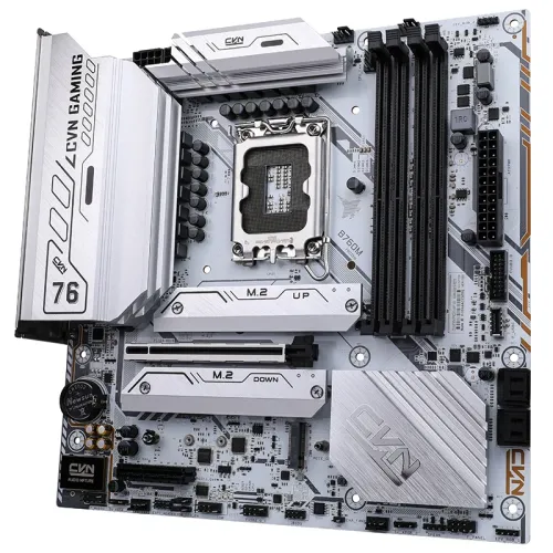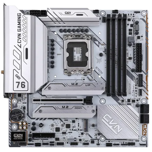 The Colorful CVN B760M FROZEN WIFI V20 Motherboard is a vivid and high-performance motherboard built for gaming fans and professionals looking for a stable and visually appealing system. This motherboard is part of the CVN series and features an original bespoke white design that adds a touch of beauty to your PC setup. The CVN series has frost cooling armor that envelops the motherboard with full-coverage condensing fins. This design is not only visually appealing, but it also improves heat dissipation, assuring ideal thermal performance during intense gaming or resource-demanding jobs. A 12+1 phase reinforced power supply and an F.C.C ferrite inductor (Dr MOS 55A) provide stability and efficiency. The motherboard includes three PCIe 4.0 x4 M.2 SSD slots for those that want high-speed storage options. There are two USB 3.2 Gen 1 Type-A high-speed rear ports and one USB 3.2 Gen 2 Type-C high-speed rear interface. With a Realtek 2.5G high-speed cable network card and an AX201/AX200 WiFi 6 wireless network card that supports Bluetooth 5.2 for smooth communication, the networking capabilities are excellent. The iGame Center light efficiency control software is supported by the motherboard, allowing users to synchronize and adjust the lighting effects of the radiator, cooling fan, and memory modules, resulting in a visually attractive gaming system. The I/O backplane supports one-click BIOS updates, which simplifies the process of keeping the motherboard's software up to date. Six protective methods provide a steady operation, protecting your components and increasing total system dependability. The CVN B760M assures quality and endurance with 200 well-verified procedures. The PCB atomization process has been vastly improved, boosting the motherboard's performance and endurance even more. The CVN B760M comes with "410" high-quality service and guaranteed after-sales support as a witness to the company's dedication to customer satisfaction, delivering a seamless and worry-free experience for consumers. This motherboard is intended to suit your performance, aesthetic, and reliability requirements, whether you're a gamer or a professional.