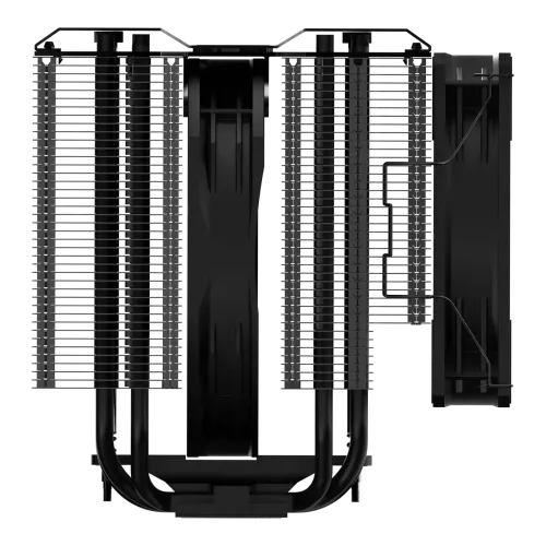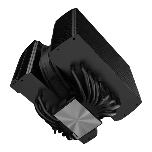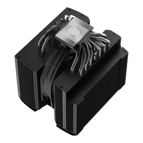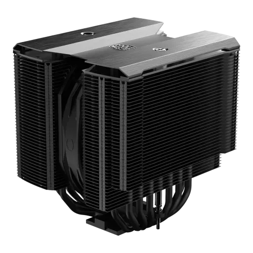 The Cooler Master MasterAir MA824 Stealth CPU Air Cooler is a high-performance cooling solution that keeps your CPU temperatures under control while retaining a sleek and discreet appearance. With its enlarged copper base, this cooler offers smooth contact and comprehensive coverage, efficiently targeting all heat zones while maximizing heat conductivity for rapid dissipation. The twin tower push-pull arrangement has 8 superconductive composite heat pipes with a groove and powder wick construction and dual variable heat pipe thickness for optimal heat transmission efficiency. The improved architecture of the 8 heat pipes distributes heat uniformly across all fin regions, improving overall cooling efficiency. The all-black stealth design not only adds refinement to your system but also works well with a variety of build types. The nickel-plated copper base's reduced thickness promotes quicker heat transmission and allows for a lower cooler height, enhancing compatibility with various PC chassis. The CPU cooler is equipped with two variable Mobius fans, which deliver outstanding quiet without losing performance. The twin staggered fan system, which includes a 120mm and a 135mm Mobius fan, offers the ideal push-pull configuration, delivering optimal airflow and air pressure for optimum heat dissipation. The 120mm Mobius fan's design provides for a large 42mm of RAM clearance, making it compatible with a broader range of RAM modules while maintaining cooling efficiency. The Cooler Master MasterAir MA824 Stealth CPU Air Cooler is an excellent alternative for consumers who want both performance and aesthetics in their cooling system.