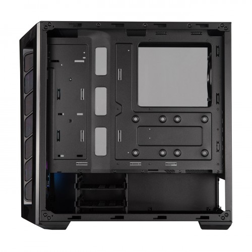 Showing off your rig through a smoked front panel is something you didn’t know you needed. The DarkMirror front panel enriches the contrast from hardware lighting, creating a picturesque display of the internal components. To cool gaming systems built inside, mesh ventilation is found on the entire length of the front panel’s sides, ensuring that the three included ARGB fans are fed with a considerable amount of air. If you’re thinking about thermal upgrades, the MasterBox MB520 ARGB supports up to seven fans and front and rear liquid cooling for high-demand builds. Paired with a tempered glass side panel and additional top ventilation, your build can look, and play, exactly as you dreamed it would.