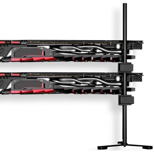 Cooler Master Universal VGA Holder for all size Tower Chassis is features magnetic feet with plastic covers to keep the VGA holder from sliding around, two adjustable shelves, and two 12cm poles which screw together to reach a height of 24 centimeters. It is build with Steel, ABS materials with 2 pcs support bracket. This VGA holder for Computer Cases and also supports 2 VGA Graphics Card for Support and No Sagging Graphic Cards Easy Assembly and Adjustment with 154 x 32 x144mm Dimensions (LxWxH). To support cards held higher than 24cm, poles from additional holders can be combined. It will make your system look better than before.