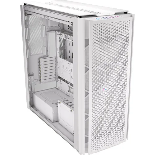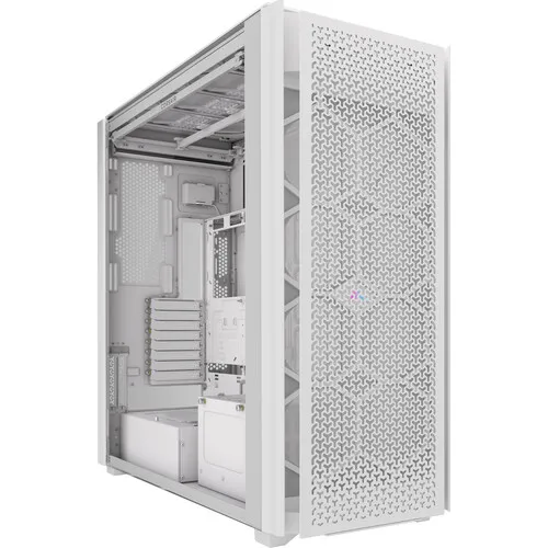 The Corsair 9000D RGB White Full-Tower E-ATX Casing is a high-end super-tower built to deliver elite-level performance and advanced customization. Designed for serious gamers, content creators, and enthusiasts, this white edition brings a clean, professional aesthetic combined with robust functionality. It supports a wide range of motherboards, including Mini-ITX, Micro-ATX, ATX, E-ATX, and SSI-EEB, making it ideal for complex workstation or gaming setups. Crafted with a strong steel frame and a sleek tempered glass side panel, the Corsair 9000D RGB White lets you showcase your components with style. The white color finish adds a modern, premium touch that stands out in any build environment. This full-tower case is engineered for maximum airflow and thermal performance. It supports a wide variety of radiator sizes—480mm, 420mm, 400mm, 360mm, 280mm, 240mm, 200mm, 140mm, and 120mm—on the top, front, side, and rear. There is no radiator support at the bottom, offering more room for PSU and cable management. With up to 18 fan mounting positions, the Corsair 9000D RGB White supports extreme air cooling. You can install 8x 120mm or 3x 140mm fans on both the top and front, 3x 120mm fans on the side, and 2x 120mm or 1x 140mm at the rear. The bottom area is reserved for other hardware components, ensuring better airflow optimization. The chassis supports GPU clearance up to 580mm, CPU coolers up to 180mm, and PSUs up to 225mm in length. Storage is also impressive, with 5x 3.5" and 6x 2.5" internal drive bays for extensive storage or RAID configurations. The Corsair 9000D RGB White includes 8 horizontal and 2 vertical expansion slots. The front I/O panel is built for next-gen connectivity. It includes 2x USB 3.2 Gen 2 Type-C, 4x USB 3.2 Gen 1 Type-A, and a 3.5mm audio combo jack. Additional headers like USB Type-E, HD Audio, SATA power, and F_PANEL ensure smooth motherboard integration. It also supports reverse connector motherboards. A spacious 76mm cable routing area allows for easy, clutter-free cable management. The Corsair 9000D RGB White is compatible with top-tier liquid cooling solutions, including CORSAIR H60, H100, H115, H150, H170, NAUTILUS, and TITAN series. It does not come with pre-installed fans, giving you the freedom to customize your cooling setup. Built-in advanced dust filters protect your system from dust and debris over time. If you're building an ultimate custom PC that demands style, flexibility, and power, the Corsair RGB Full-Tower Casing White is a perfect choice. With its massive space, cooling support, and stunning white design, this case is ideal for powerful gaming rigs, professional content creation systems, and enthusiast-level custom builds.