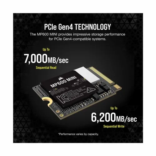 The Corsair MP600 MINI 1TB SSD is a powerful storage solution engineered for high-performance computing in compact devices. This Corsair MP600 MINI 1TB PCIe Gen4 M.2 SSD utilizes the advanced PCIe Gen4.0 x4 interface combined with a space-saving M.2 2230 form factor, delivering blazing-fast sequential read speeds of up to 7000MB/s and sequential write speeds of up to 6200MB/s. Powered by durable 3D TLC flash memory, the Corsair MP600 MINI SSD provides 1TB of storage with an impressive MTBF of 1,500,000 hours and 600TBW endurance, ensuring exceptional reliability for gaming, content creation, and professional applications. It is fully compatible with Windows 10 and Windows 11, offering plug-and-play convenience while maintaining efficient energy usage, with an average power consumption of 5W and a peak of 15W. Despite its ultra-lightweight design of 0.025 g, this SSD is built to endure extreme conditions, supporting operating temperatures from 0°C to 65°C, storage temperatures from -40°C to 85°C, shock resistance of 1500 G, and vibration resistance from 20Hz to 2000Hz, making it a rugged and reliable storage solution. With its compact size, superior speed, and robust durability, the Corsair MP600 MINI 1TB SSD is ideal for modern laptops, mini PCs, and small form factor devices, ensuring seamless performance for both demanding workloads and everyday computing.