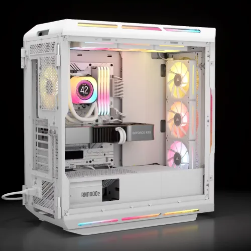 The Corsair RMe Series RM1000e 1000W White Power Supply (UK) is a premium, fully modular PSU designed for gamers, content creators, and PC enthusiasts who demand high performance and reliability. The Corsair RMe Series RM1000e 1000W White delivers 1000W of continuous power, backed by 80 PLUS Gold and Cybenetics Gold certifications, ensuring up to 90% energy efficiency, lower electricity bills, and reduced heat output. Its ATX 3.1 compliance and PCIe 5.1 support make the Corsair RMe Series RM1000e 1000W White Power Supply future-proof, capable of handling the latest graphics cards and high-end hardware. The fully modular design with Type-4 cable connectors allows for precise cable management and a clean, organized build. Equipped with a 140mm rifle-bearing fan with Zero RPM mode, it operates silently under light and medium loads, while maintaining optimal cooling during intensive gaming or workstation use. Boasting an MTBF of 100,000 hours, dimensions of 140 x 150 x 86mm, and a weight of 3.23kg, this Corsair RMe Series RM1000e 1000W White Power Supply combines durability, performance, and style with its sleek white finish. Connectivity options include 3 PCIe and 6 SATA connectors, supporting multiple GPUs, storage devices, and peripherals. With a wide input voltage range of 100–240V, 47–63Hz frequency, and 12A–6A input current, the Corsair RMe Series RM1000e 1000W White guarantees stable, uninterrupted power, making it an ideal choice for any high-performance PC build in the UK or worldwide.