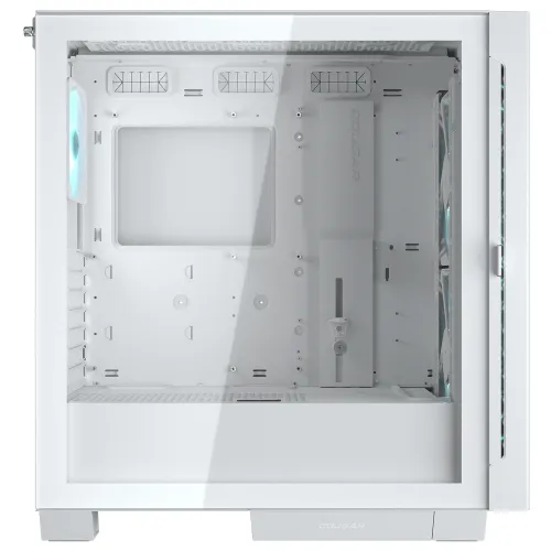 The Cougar Airface ECO RGB Mid Tower E-ATX Gaming Casing White is designed for gamers who value excellent cooling performance, improved airflow, and modern looks. Its distinctive coned vents use thermodynamic principles to increase cooling efficiency, ensuring that high-performance components remain at ideal temperatures even during intense gaming sessions. The Cougar Airface ECO RGB Casing White is pre-installed with two enormous 180mm ARGB PWM cooling fans in the front and one 120mm ARGB fan in the back, providing tremendous airflow right out of the box. The revolutionary quick-slide dust filter allows for easy cleaning, while the removable top panel and detachable front bracket simplify installation and maintenance. This Cougar Airface ECO RGB Mid Tower E-ATX Gaming Casing White supports a broad range of motherboard types, including Mini ITX, Micro ATX, ATX, CEB, and E-ATX, allowing you maximum construction versatility. It supports high-end hardware, with room for graphics cards up to 390mm long, CPU coolers up to 190mm tall, and power supplies up to 200mm long. The increased vertical GPU area enhances both cooling and aesthetics, while improved cable routing assures a clean and orderly design. The Cougar Airface ECO RGB Gaming Casing White features a modular front I/O panel with USB 3.2 Gen 2 Type-C, two USB 3.0 Type-A ports, a 4-pole headset audio connection, and an RGB control button for convenience. Cooling options are plentiful, with room for up to seven fans and water-cooling radiators up to 360mm in the front and top, and 140mm in the back. Both pre-installed front fans have changeable speeds ranging from 300 to 1200 RPM, while the rear fan operates at 1000 RPM for continuous cooling. The RGB lighting system is fully compatible with motherboard synchronization, allowing for bespoke lighting effects to complement any gaming setup. The Cougar Airface ECO RGB Mid Tower E-ATX Gaming Casing White, with two 3.5-inch drive bays, two SSD trays, and seven convertible expansion slots for vertical GPU mounting, offers a performance-driven design, high airflow, and modern appearance for demanding gamers and PC enthusiasts.