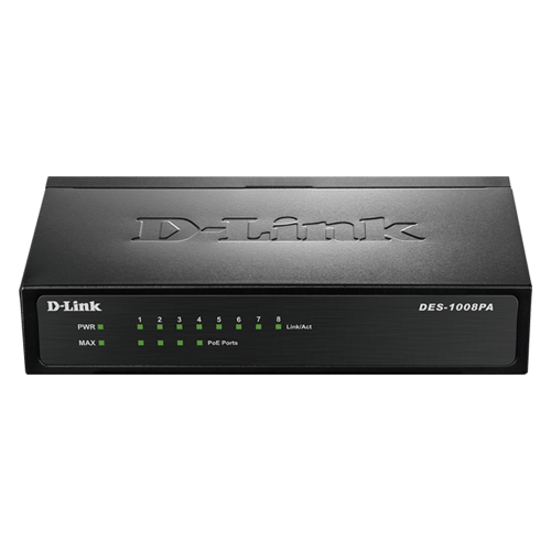 D-Link DES-1008P 8-Port Desktop Switchcomes with 4 PoE Ports. This Desktop Switch featured with Eight 10/100 Mbps Fast Ethernet ports, Full/half-duplex for Ethernet/Fast Ethernet speeds, IEEE 802.3x flow control, Store-and-forward switching scheme, RoHS compliant, Plug-and-play installation, Auto MDI/MDIX crossover for all ports and Compact lightweight chassis. It can be used to share files, music and video across your network or create a multi-player gaming environment. The Desktop Switch runs ultra-quiet, making it ideal for both home and small office use.