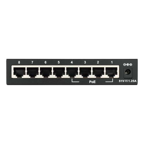The DES-1008P featured with four 10/100BASE-TX ports that support the IEEE 802.3af PoE protocol. In this desktop switch, all PoE ports can supply up to 15.4 W for a total PoE budget of 56 W, that allowing users to attach an IEEE 802.3af-compliant device to the DES-1008P without requiring additional power.