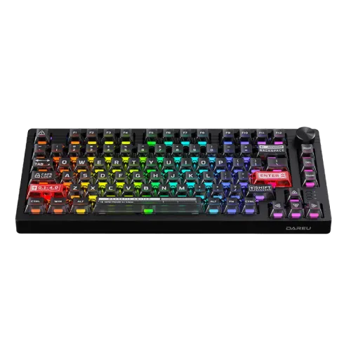 The Dareu EK75 RT Magnetic Switch RGB Mechanical Gaming Keyboard is a compact and feature-rich device intended for gamers who value both performance and style. This keyboard's 80-key, 75% layout provides a minimalist design that conserves desk space without sacrificing any necessary functionality. The DAREU RT Magnetic Switch, which offers a distinctive, snappy typing experience perfect for hectic gaming sessions, is its most notable feature. Bright RGB lighting is another feature of the Dareu EK75 RT Magnetic Switch Mechanical Keyboard that lets users tailor the lighting effects to their preferred gaming environment. Its superior build quality is enhanced by the positioning plate made of aluminum alloy, which guarantees stability and longevity. The USB Type-C interface of the Dareu EK75 RT Magnetic Switch Mechanical Keyboard allows for dependable and quick-wired performance in terms of connectivity. A handy knob control makes it easier for users to alter volume and other configurable features quickly. The color options for the keycaps differ in terms of material: the translucent PC keycaps for the black version and the sturdy PBT keycaps for the red version both have a pleasing tactile feel and long-lasting durability. When it comes to compatibility, the Dareu EK75 RT Magnetic Switch RGB Mechanical Gaming Keyboard is incredibly flexible, interacting with iOS, Android, Windows, and Mac computers with ease. This keyboard is quite versatile and can be used for gaming on a PC, managing media on a Mac, or utilizing it on a mobile device. The Dareu EK75 RT is a great option for gamers seeking a stylish, high-performance mechanical keyboard with adjustable illumination and multi-device compatibility because of its blend of premium materials, state-of-the-art switch technology, and contemporary design.