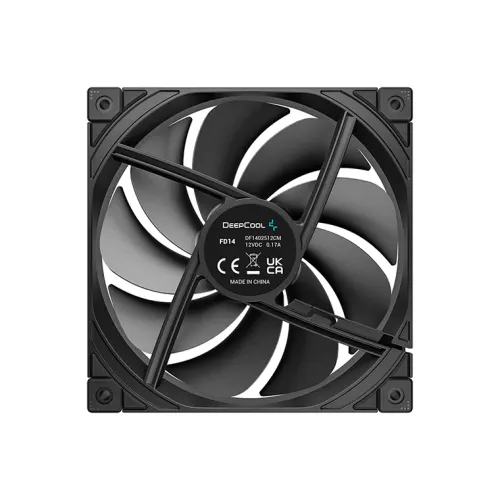The DeepCool FD14 140mm Case Fan is a high-performance cooling solution designed for gamers and PC enthusiasts looking for efficient airflow and quiet operation. This DeepCool FD14 140mm Casing Fan (MPN: R-FD14-BKNPN1-G) delivers excellent cooling power with a dynamic 400~1650 RPM±10% fan speed range, producing a strong 84.81 CFM airflow and 1.97 mmAq air pressure for improved system ventilation. Even under heavy load, this DeepCool FD14 Casing Cooler maintains low noise levels at ≤25.6 dB(A), ensuring a quieter PC experience. It uses a reliable Hydro Bearing, ensuring long-lasting durability and smooth performance. The fan features a sleek black design, a standard 140×140×25 mm size, and weighs 209g, making it compatible with most PC cases. With its 4-Pin PWM connector, users can precisely control fan speed through the motherboard for optimized cooling performance. The DeepCool FD14 140mm Case Fan operates at 12V DC, with 0.17A input current and 2.04W power consumption, offering powerful cooling efficiency while remaining energy-efficient—perfect for both gaming and professional PC builds.