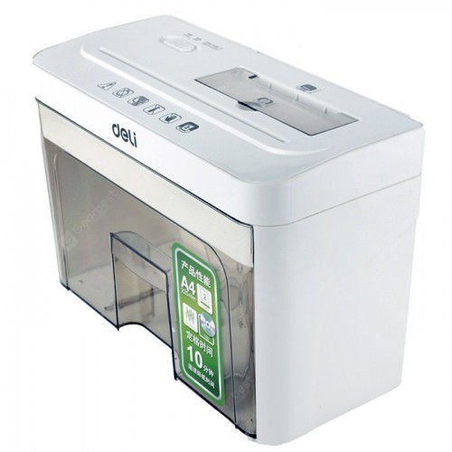 Deli 9932 2 Sheet mini Paper Shredder is a mini electric office paper shredder machine. It has a powerful shredding ability. It can shred 2 pages at a time, 2 x 12 mm shredding size, waste bin capacity 20L, LCD dynamic state, 10 minutes continuous working time. It has a shredding capacity of 2 sheets (70gsm, A4). It offers cross-type shreds and it has a 3.5L wastebasket capacity. It features less or equal to 2 meters/minutes shredding speed. This Paper Shredder can deliver a continuous run time of less or equal to 10 min and it has a noise level of less or equal to 70 dB. This paper shredder is made of high-quality stainless steel, with a nonslip handle. Electric automatic blade, simple and convenient to operate. It's a new type of paper shredder. This shredder has a plastic cover and is easy to clean and use. Just put the blade into the slot on it and pull out the blades, then you can easily remove the paper shredder for a clean kitchen or office. It has a High-speed steel core, strong and durable with the same volume. The main body of the blade is made of plastic, and the blades come out with a special design that allows you to easily move the piece without having to change pieces.The stop switch is easy to operate, and you can press the top button to automatically stop the operation. Deli 9932 2 Sheet Mini Paper Shredder offers 1-year Warranty.