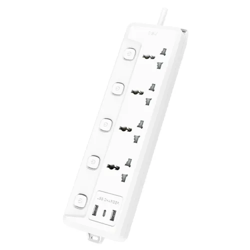 The Deli CT711 4 Port 2 Meter Power Strip is a highly efficient and versatile power solution designed to meet modern electrical demands with advanced safety and multi-device compatibility. This Deli CT711 Power Strip features a European Standard Plug and Universal Conventional Sockets, offering 4 AC sockets, 2 USB-A ports, and 1 USB Type-C port—ideal for powering laptops, smartphones, and household electronics. With a generous 2-meter cable, the Deli CT711 4 Port Power Strip provides flexible positioning options for both home and office use. Engineered for safety, it supports a maximum current of 10A, rated voltage of 250V~, and delivers up to 2500W of power output. Built using 750°C fireproof PP material and integrated copper, it ensures superior durability and heat resistance. The sub-control feature allows individual device control, while the power strip endures up to 5000 plug-in cycles, proving its long-term reliability. Packaged in an outer box measuring 70x54x30.5 cm with a gross weight of 21.19 kg, the Deli CT711 4 Port 2 Meter Power Strip is perfect for both personal use and bulk retail. This is the ideal choice for users seeking a dependable and feature-rich power solution.