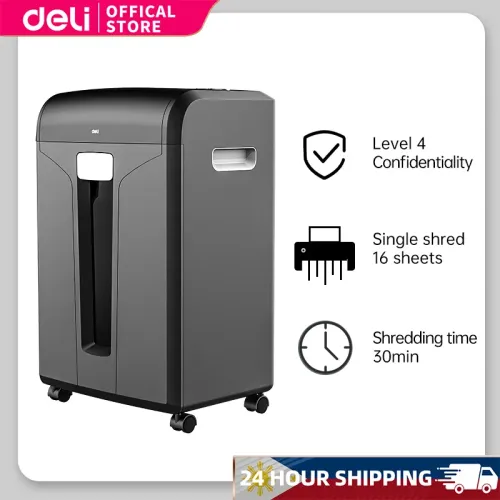 The Deli E14400 Paper Shredder is built for busy offices that need strong and reliable shredding. It can shred up to 16 pieces of A4 paper (70g) at once, cutting them into small 4×40mm pieces to protect your sensitive information. This Deli E14400 30L Paper Shredder meets security level P-4, which is great for destroying private or confidential documents. You can use it for 30 minutes straight without stopping. It also shreds more than just paper—you can safely destroy CDs, credit cards, paper clips, and staples. The Deli E14400 shredder works quickly at a speed of 2.0 meters per minute, helping you finish large jobs faster. With a 30-liter waste bin, you don’t need to empty it too often. Even though it’s powerful, it runs at a noise level of just 70dB, so it won’t disturb your work environment. The shredder has a sturdy build and weighs 15.2 kilograms, and it comes in a sleek, deep gray color. It's 270-watt motor ensures smooth, long-lasting performance. If you need a dependable and easy-to-use shredder for high-volume tasks, the Deli E14400 16-sheet Paper Shredder is a smart choice.