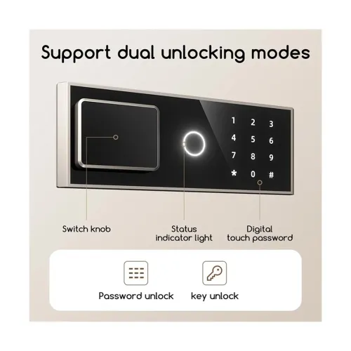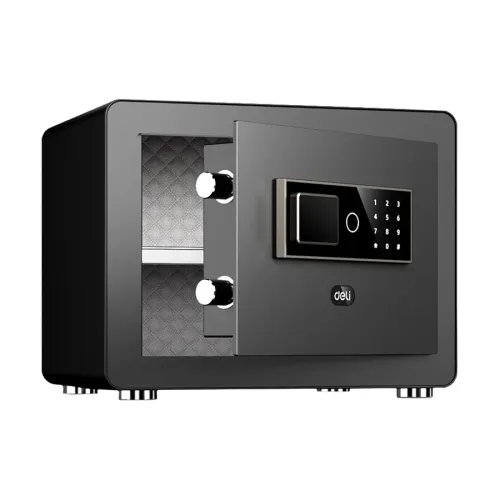 The Deli ET570 Fingerprint & Digital Safe Box is an innovative security solution designed to protect your belongings with cutting-edge technology and durable construction. This ET570 safe offers two unlock modes - password +handle and key + handle - for flexible access choices to meet your tastes and needs. The user-friendly control panel, which includes film buttons and indication cues, offers easy operation and smooth navigation, making it simple to store your possessions safely. The Deli ET570 has vast dimensions of H30 x W38 x D29 cm and a significant thickness of 1.5/4 millimeters, providing enough storage capacity for a wide range of objects, including vital papers, cash, jewels, and electronics. This safe, made of reinforced solid steel, is designed to defy tampering and forced entry attempts, assuring unrivaled durability and dependability. Its sleek black finish not only improves its visual appeal but also helps it to blend in with any home or business setting. Whether you choose the ease of fingerprint entry or the dependability of a digital password, the Deli ET570 ensures top-notch security for your stuff, giving you peace of mind and trust in your assets' safety.