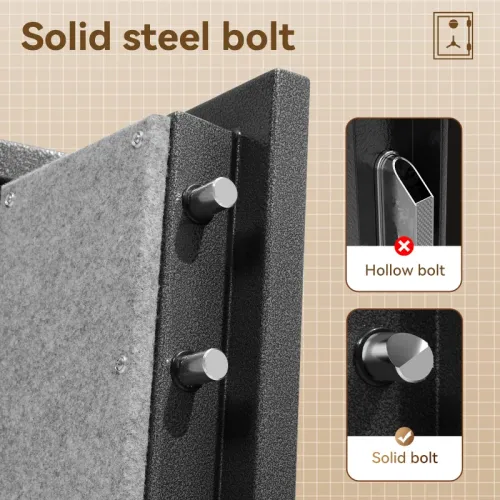 The Deli ET601 Fireproof Digital Safe Box offers reliable security with its double-layer fireproof protection, ensuring valuables remain safe even in extreme heat. It is built with 32 mm x 2 fireproof plasters, which provide enhanced resistance against fire, making it ideal for safeguarding important documents, electronics, and valuables. Constructed from heavy-duty carbon steel, this Deli ET601 Digital Locker & Vault features a 6 mm-thick door and a 4 mm-thick body, adding strength against unauthorized access. The electronic button panel with an LCD screen offers a simple and modern way to unlock the safe using a password + handle or an emergency key + handle method. An external battery box provides backup power, ensuring accessibility even during power failures. Security is reinforced with an alarm system that alerts users when an incorrect password is entered or if the safe experiences sudden movements. The 190° door opening allows for convenient access, while its sleek black finish makes it a stylish addition to both home and office spaces. With dimensions of H60 x W45 x D40 cm and a weight of 50.5 KG, the Deli ET601 safe box is designed for practicality and peace of mind. Whether used for securing jewelry, confidential files, or financial assets, this Deli ET601 fireproof digital locker combines advanced security features with ease of use, making it a reliable choice for personal and professional protection.