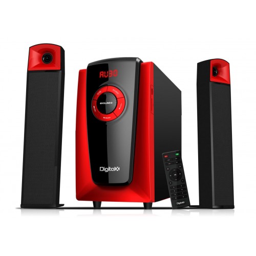 The DigitalX X-F980BT 2.1CH Multimedia Speakers make it simple to enjoy wireless music across the home. Simply pair the speaker with your Bluetooth device and listen to anything in your playlist. With the DigitalX X-F980BT 2.1CH Multimedia Speakers, you may enjoy wireless independence. The DigitalX X-F980BT 2.1CH Multimedia Speakers sound systems include two high-resolution satellite speakers, four strong speakers for loud and extended sound quality, and one powerful woofer for genuine and exact sound. It provides the performance to enjoy a more realistic and immersive sound. The DigitalX X-F980BT 2.1CH Multimedia Speakers allow you to listen to FM radio with excellent sound quality and channel clarity. The remote control makes it simple to change channels. Because the signal strength is sufficient for a steady connection, the FM does not require any extra antennae. The DigitalX X-F980BT 2.1CH Multimedia Speakers' cutting-edge design simply fits into any area, every room in your home. The sleek black design perfectly incorporates amazing curved speakers that keep the profile low while pumping out the huge sound. You may regulate the sound, bass, volume level, and equalization completely with the remote control. The remote is powered by portable batteries and is the most convenient method to interact with music. The signal strength is rather strong, and it is capable of controlling the speaker from a distance. The DigitalX X-F980BT Multimedia Speaker comes with a 01-year warranty.