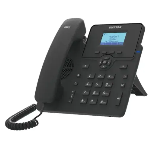 DINSTAR C61SP IP Phone is based on cutting-edge SIP technology, making it ideal for all types of business communication. It features a 132x64 pixel Graphical LCD with backlight, an elegant and user-friendly user interface, and a good user experience. It supports HD voice quality, ensuring crystal-clear audio during calls. The IP phone features two extension accounts, allowing users to manage multiple lines or extensions. The IP phone is equipped with dual-port 10/100Mbps Ethernet for reliable network connectivity. The DINSTAR C61SP IP Phone offers a range of features to enhance productivity and convenience. It includes an XML browser for accessing customized applications and services. Action URL/URI allows for integration with other systems or devices. The phonebook can store up to 500 groups of contacts, while the blacklist can hold 100 groups of blocked numbers. The call log keeps a record of 100 previous calls.