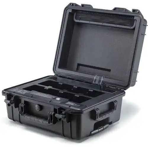 The DJI Matrice 300 BS60 Intelligent Battery Station is a portable and user-friendly solution for charging, storing, and transporting batteries. It is specifically designed to work with TB60 intelligent flight batteries and WB37 intelligent batteries. The battery station has the capacity to charge four drone batteries and four controller batteries simultaneously, allowing for seamless battery rotation during operations. The DJI Matrice 300 BS60 Intelligent Battery Station is compatible with the DJI Matrice 300 RTK drone. Designed in the form of a trolley case, it can be easily carried and transported. The battery station requires a 220-240 V power source for operation. It takes approximately 60 minutes to fully charge two TB60 intelligent flight batteries and 30 minutes to charge them to a capacity range of 20% to 90%. The BS60 battery station should only be used with compatible batteries and should not be used to charge other battery types. In the box, you will find the battery station itself along with a power cable. The dimensions of the battery station are 510×403×252 mm, and it weighs 8.37 kg (18 lbs) without batteries. It has a maximum load capacity of 12 kg (26 lbs). The charging times are approximately 70 minutes for 100-120 V input and 60 minutes for 220-240 V input. The maximum input power is 1,070 W. The operating temperature range is from -20°C to +40°C (-68°F to +104°F).