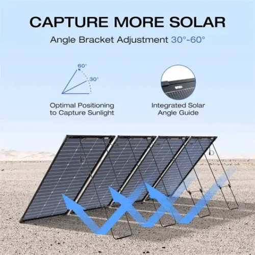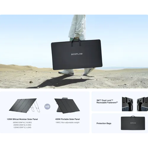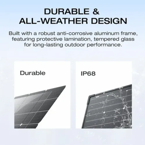 The EcoFlow 125W Portable Solar Panel is a powerful and adaptable solar energy-generating system suitable for both indoor and outdoor use. The EcoFlow 125W Solar Panel, which uses N-Type TOPCon monocrystalline silicon cells, achieves up to 25% conversion efficiency, has an STC-rated power of 125W, and a bifacial maximum output of 138W, owing to its dual-sided design that absorbs sunlight from both sides. This EcoFlow 125W Single Solar Panel runs at 50V open-circuit voltage, with an ideal working current of 3A and a voltage of 43V, resulting in a reliable and efficient power production. It has IP68-rated waterproof and dustproof protection, a strong aluminum frame, 1.1mm tempered glass, POE films for UV and moisture resistance, and PET backsheets for long-term durability. Its modular design allows for easy extension with EcoFlow portable power stations, while the 30-60° adjustable stand and solar angle guide maximise energy gathering. The EcoFlow 125W Portable Solar Panel weighs only 4.2 kg and dimensions 612×1154×22 mm, providing mobility without sacrificing performance. The EcoFlow 125W Portable Solar Panel is rated for harsh temperatures ranging from -40°C to 85°C, has a maximum system voltage of 600V DC, and has a lifespan of 30 years at 90% capacity. It combines cutting-edge technology, dependability, and weather-resistant sturdiness for long-term energy independence.