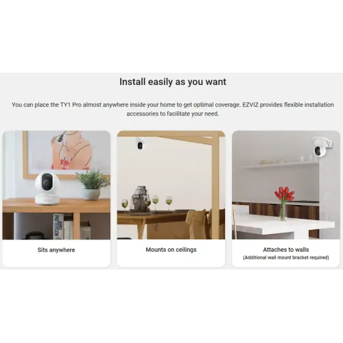 The EZVIZ TY1 Pro 3K 5MP WiFi Smart Dome IP Camera redefines indoor surveillance with its powerful 5MP image sensor and ultra-clear 3K resolution, delivering stunning visuals at 2880 × 1620 pixels. Whether you're monitoring your home, office, or retail space, this smart dome camera ensures every detail is captured with precision. Its advanced pan/tilt mechanism offers flexible coverage, while the wide-angle lens provides expansive viewing across horizontal, vertical, and diagonal axes—minimizing blind spots and maximizing situational awareness. Equipped with intelligent motion detection, human shape recognition, auto-tracking, and loud noise alerts, the EZVIZ TY1 Pro 3K Security Camera acts as your proactive security assistant, instantly notifying you of unusual activity. The built-in microphone and speaker enable seamless two-way communication, allowing you to interact with family members, pets, or visitors remotely. Thanks to its enhanced color night vision, the WiFi camera maintains vivid clarity even in low-light conditions, ensuring round-the-clock protection. Designed for convenience, the camera supports stable Wi-Fi connectivity and includes a microSD card slot for local storage, eliminating the need for cloud subscriptions. Its sleek, compact design blends effortlessly into any interior, while the Type-C power input and low 5W consumption make it both energy-efficient and easy to install. Whether you're upgrading your smart home setup or seeking reliable indoor monitoring, the EZVIZ TY1 Pro 3K 5MP offers a perfect blend of high-resolution imaging, smart features, and user-friendly operation—making it a top-tier choice for modern security needs.