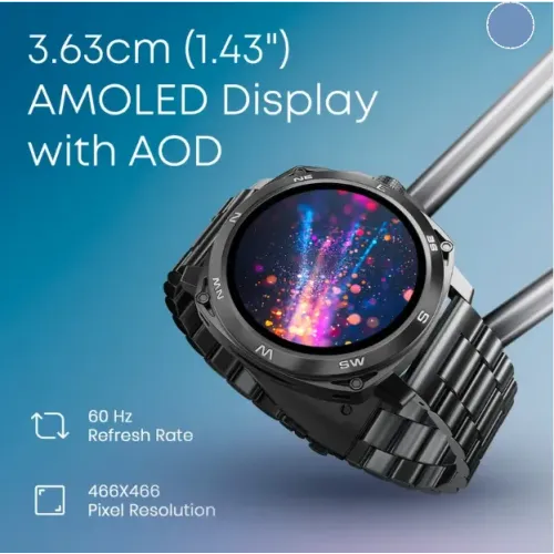 | Display | 1.43-inch AMOLED Touch Display 466 × 466 Pixels Up to 650 nits Brightness Always-On-Display Ultra-Clear Screen |