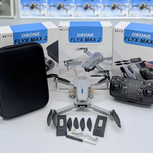 The Flyx Max 2 Toy Drone is an immersive aerial adventure with a 4K dual camera, brushless motors, and optical flow positioning. Crafted for both novice flyers and drone enthusiasts, the Flyx Max 2 Toy Drone delivers an exceptional flying experience with its sleek silver ABS plastic body and compact foldable design (20×16.5×5.5 cm unfolded, 13×8×5.5 cm folded). Powered by a robust 1503 brushless motor and a 3.7V 1800mAh LiPo battery, it offers up to 20 minutes of flight time per charge, with three adjustable speed modes—2m/s (low), 4m/s (medium), and 7m/s (high)—to suit different skill levels and environments. The drone operates on a 2.4GHz frequency with a 4-channel transmitter (Mode 2, left-hand throttle), ensuring stable control up to 150 meters away. For real-time visuals, the Flyx Max 2 features a WiFi-enabled toy-grade 4K dual camera with optical flow positioning, offering FPV (First Person View) transmission within a 15–30 meter range, ideal for capturing stunning aerial footage and selfies. With a 60-minute charging time, users can quickly get back in the air. Whether you're exploring landscapes or practicing aerial maneuvers, the Flyx Max 2 stands out as a reliable, stylish drone choice for hobbyists and casual users alike. Its combination of durability, ease of use, and advanced features makes it a top contender in the toy drone category.