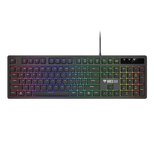 The Gamdias ARES E3 features an RGB-style membrane keyboard with a fixed multi-colored backlight that elevates your gaming setup. Its low-profile keycaps and streamlined design enhance typing comfort, providing a smooth, immersive, and enjoyable gaming and typing experience.