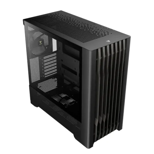 The Gamdias ATHENA P3 E-ATX Mid-Tower Gaming Casing combines airflow optimization, large interior, and modern connection. Its bar-patterned mesh front panel with dual accents is intended to increase ventilation while giving the case a striking, aggressive appearance. The novel gap-bridging bracket improves cooling by directing air directly across heat-sensitive components. The Gamdias ATHENA P3 Gaming Casing contains four high-performance 140mm PWM fans—three in the front and one in the back—a fan hub, and Velcro straps for easy wire management. It supports E-ATX, ATX, Micro-ATX, and Mini-ITX motherboards and allows for connector-hidden board designs to provide a clean, orderly setup. The Gamdias ATHENA P3 Gaming Casing has remarkable hardware compatibility, supporting GPUs up to 430mm, CPU coolers up to 180mm, and power supplies up to 220mm. The case features a perforated air vent above the PSU chamber to improve ventilation and internal cooling. Radiator support is extensive, with room for 360mm or 280mm radiators at the top, 420mm or 280mm in the front, and 120mm or 140mm in the back. Additionally, the Gamdias ATHENA P3 E-ATX Mid-Tower Gaming Casing features fan mounts that can accommodate up to three 120mm or 140mm fans on the top and front, as well as two 120mm or 140mm fans on the bottom. The HDD cage can hold two 3.5-inch or two 2.5-inch drives, with an additional 2.5-inch SSD attachment. The I/O panel offers modern connection, including two USB 3.0 ports, one USB Type-C Gen 2 port, HD audio, and an LED control button. Built of SPCC steel, ABS, and a tempered glass side panel, the Gamdias ATHENA P3 E-ATX Mid-Tower Gaming Casing combines durability and elegance. It also offers 5V 3-pin addressable RGB synchronization to create spectacular lighting effects throughout your system.