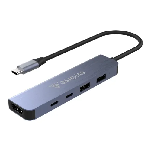 The Gamdias Mercury M1-500 5-in-1 Type-C Hub provides additional connections for modern laptops, tablets, and desktops. The Gamdias Mercury Hub's smart and compact design boosts efficiency by combining several ports in one stylish device. This hub has two Type-C connections, two USB ports, and one HDMI output, making it an excellent choice for multitasking professionals, gamers, and students. Beginning with its robust data transfer capabilities, the Gamdias Mercury M1-500 5-in-1 Type-C Hub has a maximum data transfer speed of up to 5 Gbps, ensuring seamless and efficient file transfers across external devices, smartphones, and peripherals. Users will appreciate how the Gamdias Type-C Hub performs consistently even during high-demand tasks. The Gamdias Mercury M1-500 Type-C Hub balances performance and convenience by supporting a resolution of up to 4K at 30fps via the HDMI connector, providing crystal-clear display output for monitors, TVs, and projectors. This makes the Gamdias Hub ideal for presentations, video editing, streaming, and entertainment on a large screen. Furthermore, the Gamdias Mercury M1-500 5-in-1 Hub has a maximum power output of 100W Power Delivery, enabling quick and effective charging of laptops, tablets, and smartphones without compromising other connections. The Gamdias Type-C Hub allows users to charge devices while also transferring data. The Gamdias Mercury M1-500 Type-C Hub is a reliable connectivity solution that is lightweight, sturdy, and portable, making it ideal for travel and daily use.