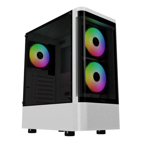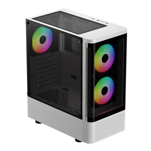 The Gamdias TALOS E3 CG WH ARGB ATX Mid-Tower Gaming Casing has a tool-free installation of the tempered glass window. The construction technique is made available to people of all skill levels. This Gamdias TALOS E3 CG WH ARGB Gaming Casing can accommodate motherboards up to ATX size, allowing for a variety of designs, including Mini-ITX and Micro-ATX setups. The power cover design not only improves the overall appearance but also helps with cable management. A magnetic dust filter keeps your system clean and dust-free, extending airflow and component life. The Gamdias TALOS E3 CG WH ARGB Mid-Tower Gaming Casing supports a wide range of radiator sizes, including 240mm on top, 360mm in the front (with a removable HDD cage for AIO cooling), and 120mm in the back, giving you lots of cooling options for high-performance setups. The Gamdias TALOS E3 CG WH ARGB ATX Mid-Tower Gaming Case Fan support is extensive, allowing for a wide range of configurations with the possibility to add additional fans in various positions. The pre-installed fans consist of two 120mm ARGB fans in the front and one 120mm ARGB fan in the back, providing great cooling right out of the box. The Gamdias TALOS E3 CG WH ARGB ATX Casing's drive bays are flexible, allowing for two 3.5" drives or a combination of one 2.5" and one 3.5" drive, as well as two additional 2.5". The I/O ports are compatible with USB 3.0, USB 2.0, HD audio, and fan LED control for easy connection. The TALOS E3 CG WH is intended to meet the requirements of modern gaming systems by limiting CPU cooler height to 160mm, VGA length to 300mm, and PSU length to 150mm.