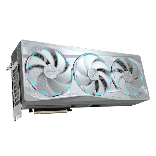 The GIGABYTE AORUS GeForce RTX 5090 MASTER ICE 32G GDDR7 Graphics Card is a high-performance, future-ready graphics powerhouse designed for gamers and creative who want top-tier technology and performance. GIGABYTE RTX 5090 Graphics is based on NVIDIA's Blackwell architecture and features an astounding 32GB of GDDR7 memory and a 512-bit memory interface, providing unrivaled performance, efficiency, and excellent visual quality for the most demanding workloads. With a core clock speed of 2655 MHz, the card provides ultra-smooth performance and outstanding pictures, whether for heavy gaming or professional creative work. GIGABYTE AORUS GeForce RTX 5090 MASTER ICE 32G Graphicssophisticated WINDFORCE cooling system, which includes Hawk fans, superconducting heat pipes, and server-grade thermal gel, ensures consistent thermal management under extreme workloads, while technologies such as ray tracing, DLSS 4, and AI-enhanced visuals improve realism and detail in every frame. The GIGABYTE Graphics card's programmable RGB Halo lighting and elegant LCD edge view add aesthetic appeal to its already impressive performance. Future-proof connection, including PCIe 5.0, DisplayPort 2.1, and HDMI 2.1, provides compatibility with the latest systems, while the sturdy build, strengthened structure, and versatile VGA holder add to usability. The GIGABYTE AORUS GeForce RTX 5090 MASTER ICE 32G graphics card is the ideal solution for individuals looking for cutting-edge technology, unrivaled performance, and a sleek appearance.