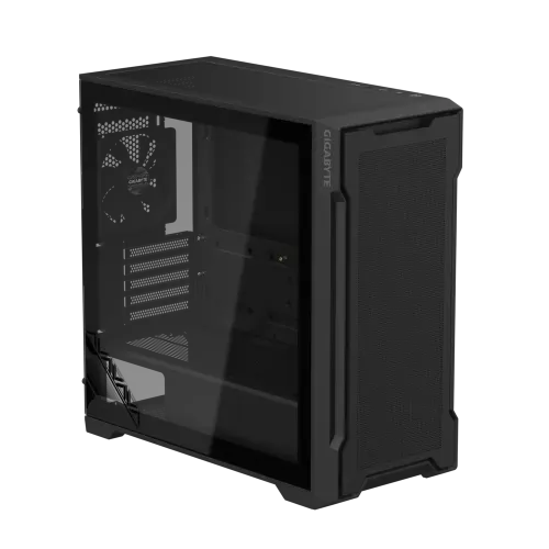 The GIGABYTE C102G GLASS Mid Tower Gaming Casing seamlessly blends style and functionality to enhance your gaming setup. Its optimized airflow design, featuring vented front, top, and partial right-side panels, ensures generous cooling for your components while adding a touch of premium aesthetics. The case is built with a full-size 4mm black tempered glass side panel, which not only showcases your internal RGB lighting in stunning detail but also minimizes the risk of fragmentation with its non-drilled design, making removal both easy and safe. The I/O panel is equipped with two USB 3.0 ports, audio ports, a reset button, and a power button for convenient access. A detachable magnetic front panel simplifies device replacement and routine cleaning. The PSU shroud design offers a clean look by hiding the PSU and power cables while allowing you to display the PSU through a window design. Additionally, the detachable dust filters on the top, right-side panels, and bottom maintain optimal cooling performance and make maintenance straightforward, ensuring your PC remains dust-free and performs at its best. This casing is designed for gamers who seek a combination of aesthetics and superior cooling efficiency.